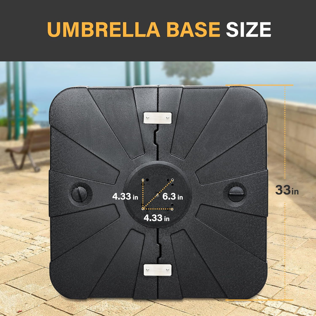 Name: 220lb Capacity Fillable Mobile Offset Patio Base Market Cantilever Umbrella Stand Square, 33"x33"x6.7", Black-Heavy...