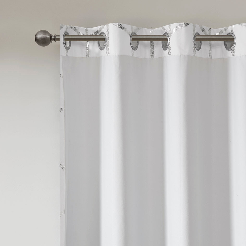 Total Blackout Metallic Print Grommet Top Curtain Panel Only 1 Pc Panel White Silver Polyester