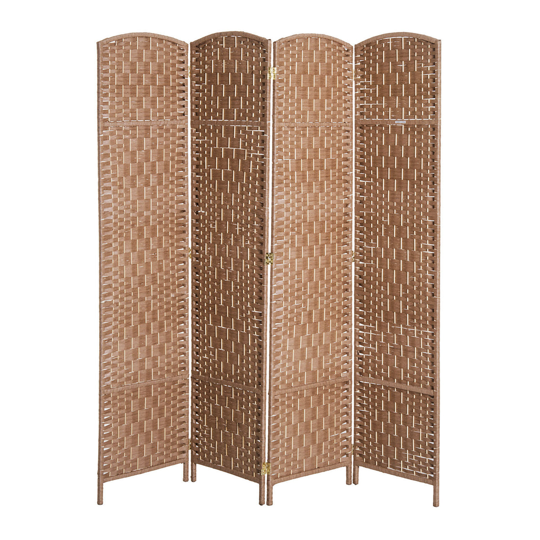 Homcom 6' Tall Wicker Weave 4 Panel Room Divider Privacy Screen Natural Natural Wood
