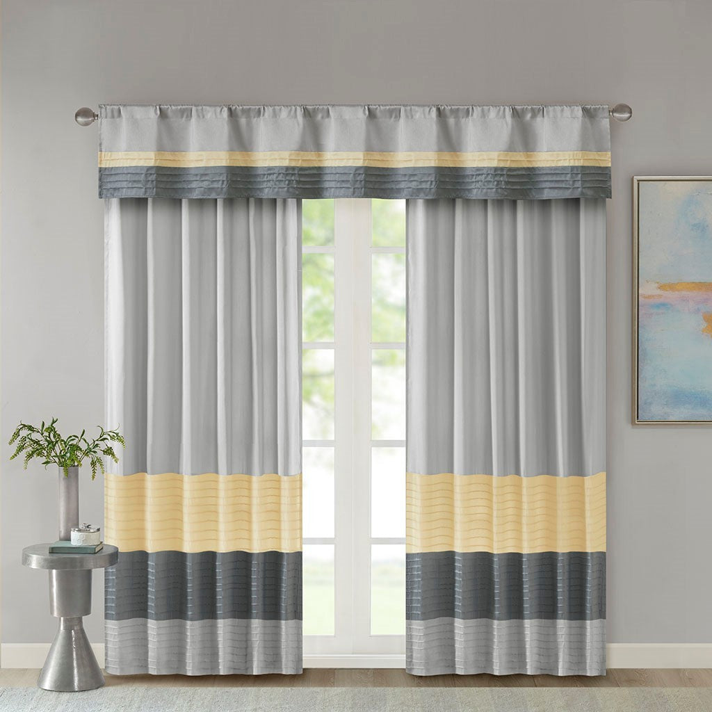 Name: Polyoni Pintuck Curtain Panel(Only 1 Pc Panel) Description: Description Amherst's modern color block design...