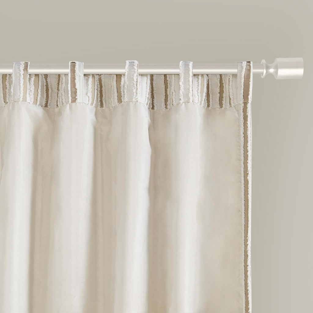Clipped Jacquard Light Filtering Rod Pocket Back Tab Single Curtain Panel Only 1 Pc Panel Natural Polyester