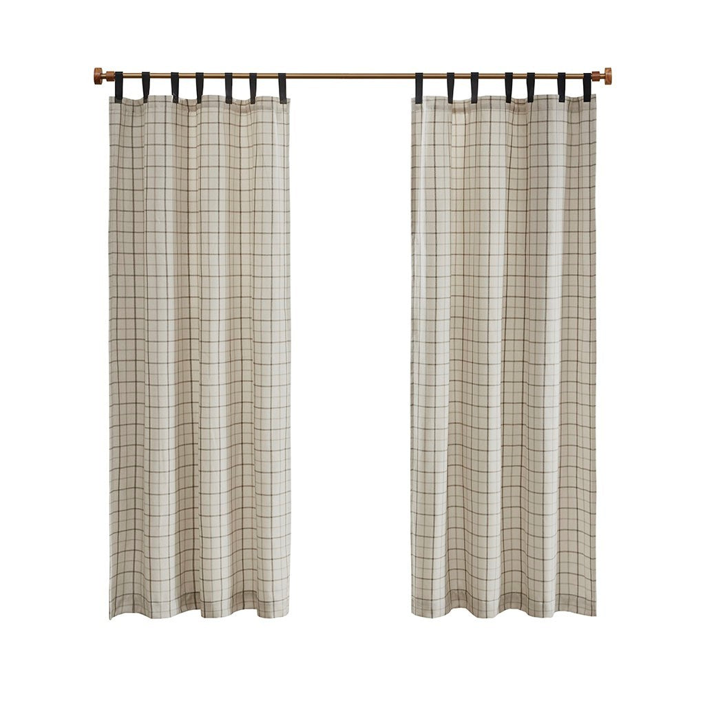 Plaid Rod Pocket And Back Tab Curtain Panel With Fleece Lining Natural Polyester