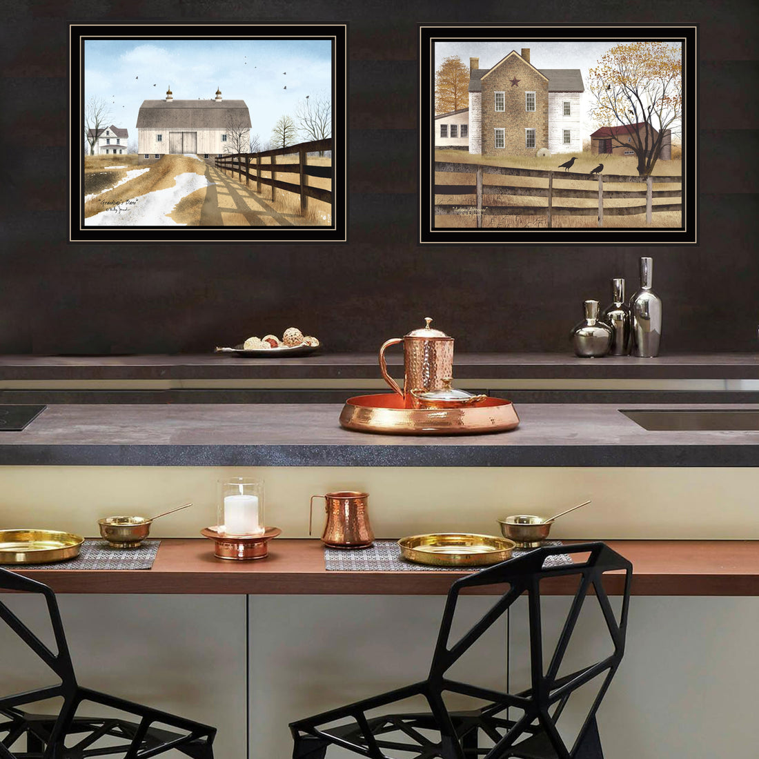 2 Piece Vignette Grandpa'S Barn,Autumn Afternoon Black Framed Wall Art For Living Room, Farmhouse Wall Art Print For Home Decor, Bedroom Wall Art By Billy Jacobs Multicolor Wood Paper