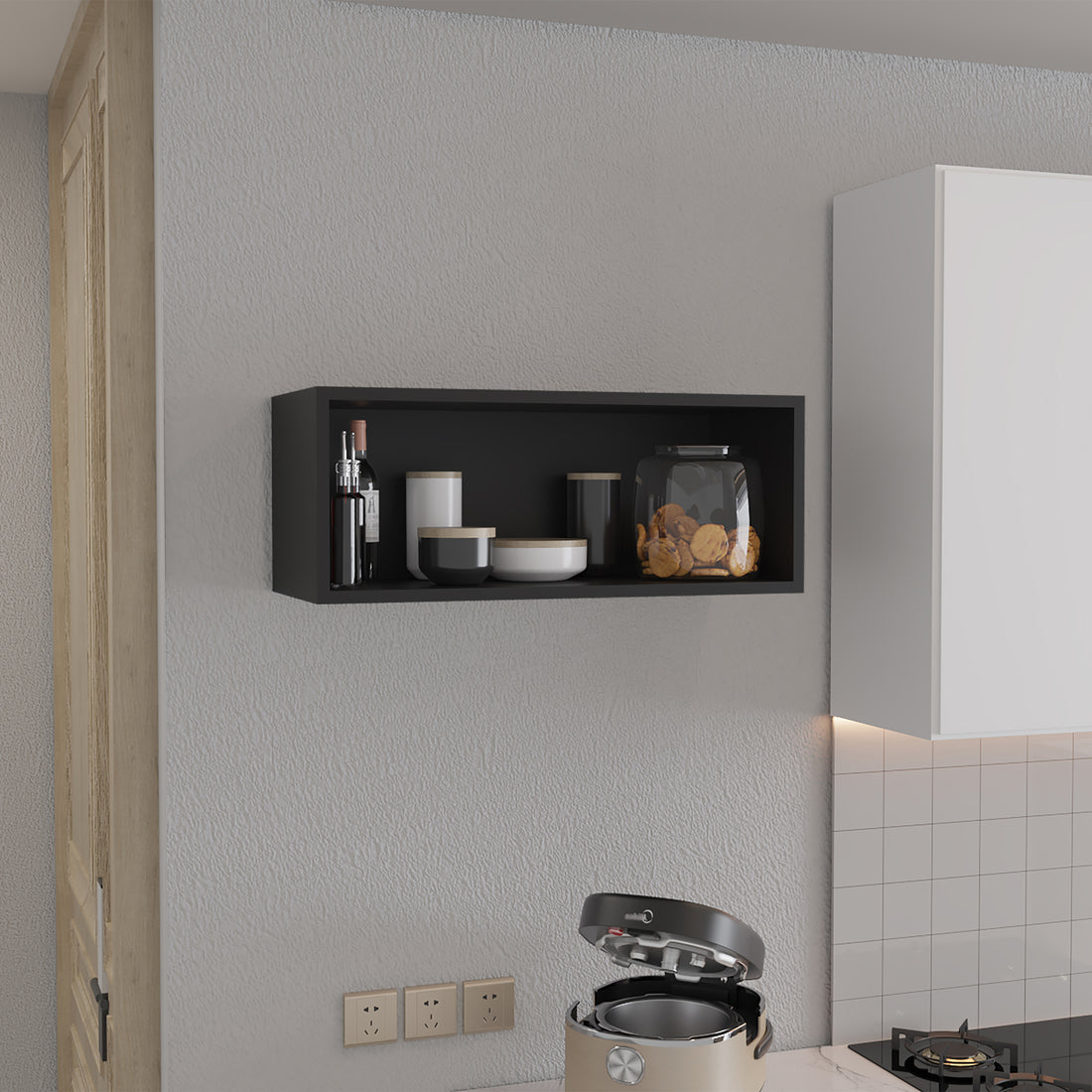 Wally 30" Wide X 12"H Open Wall Cabinet, Wall Shelf, Storage Cabinet, Cube Shelf Bedroom, Office, Living Room, Garage Black Primary Living Space Shelves Included Modern Particle Board