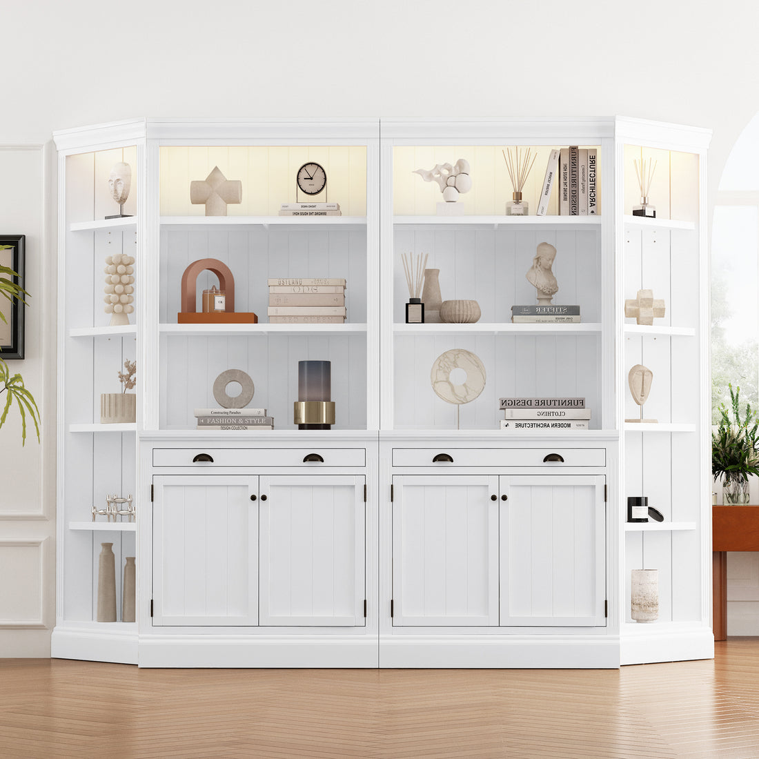83.4"Tall Two Bookshelf With Two Corner Shelf Suite,Bookcase With 2 Doors And 1 Drawer,5 Tier Corner Shelf With Open Shelves,Free Standing Shelves Suite With Led Lighting For Living