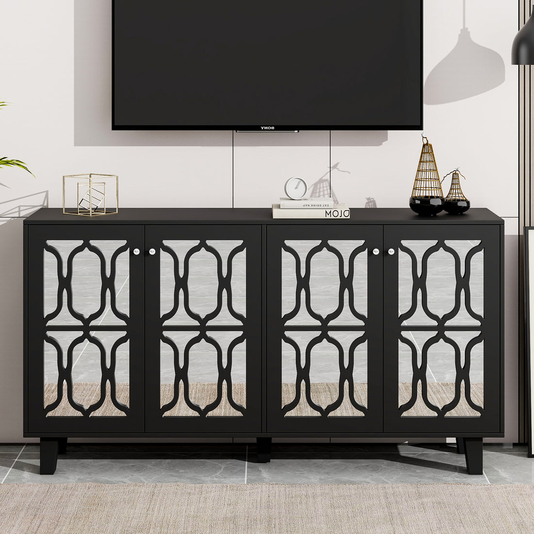 Name: Buffet Cabinet with Adjustable Shelves, 4-Door Mirror Hollow-Carved Tv stand for TVs Up to...