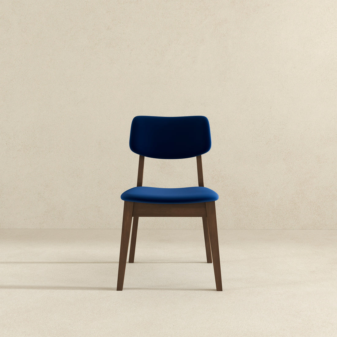 Carlos Blue Velvet Solid Back Side Chair Set Of 2 Solid Brown,Navy Blue Brown Dining Room Foam Wipe Clean Mid Century Modern Dining Chairs Foam Solid Wood,Velvet