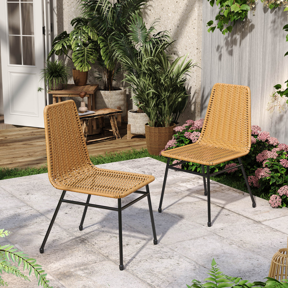 Dining Chair Set Of 2 Light Brown Pe Rattan Iron