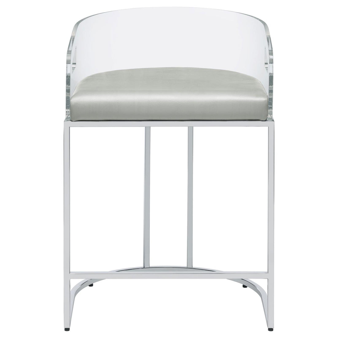Grey And Chrome Acrylic Back Stools Set Of 2 Solid Grey Dining Room Foam Spot Clean Contemporary,Modern Bar Stools Solid Back Foam Faux Leather