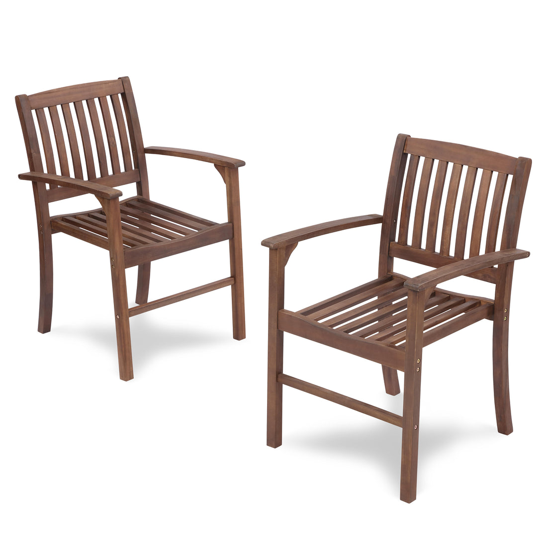 Patio Dining Chair Set Of 2, Solid Wood Indoor Outdoor Furniture Brown Brown Acacia Wood