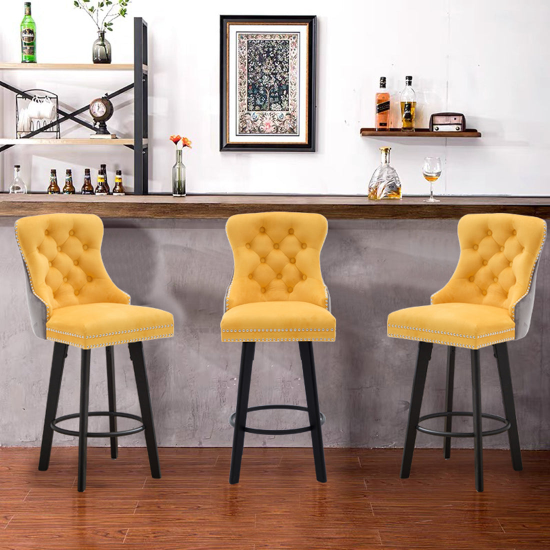Name: Modern Swivel Bar Stools Velvet Barstools Button Tufted Bar Stools Rivet Trim Bar Stools...