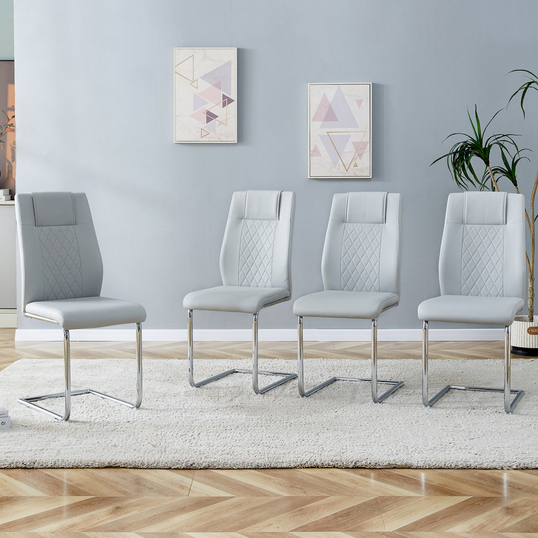Name: Modern minimalist dining chairs and office chairs. 4-piece set of light gray Pu seats...