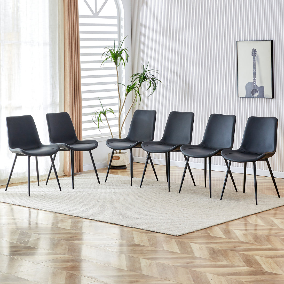 Black Artificial Leather Backrest Cushion Dining Chair, Black Metal Legs, Curved Widened Cushion Design For More Comfort, Suitable For Restaurants, Kitchens, Bedrooms, Offices. 6 Chairs 0502 Black Faux Leather