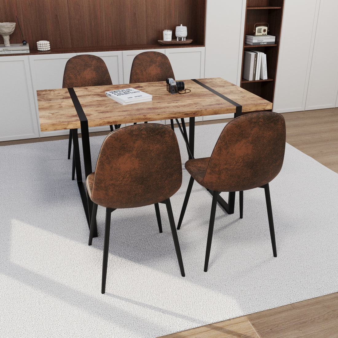 Mdf Dark Wood Dining Table And Modern Dining Chair Set Of 4 Pieces, Medieval Wooden Kitchen Dining Table Set, Black Rectangular Metal Base, Dining Table And Suede Chair Set Wood Mdf
