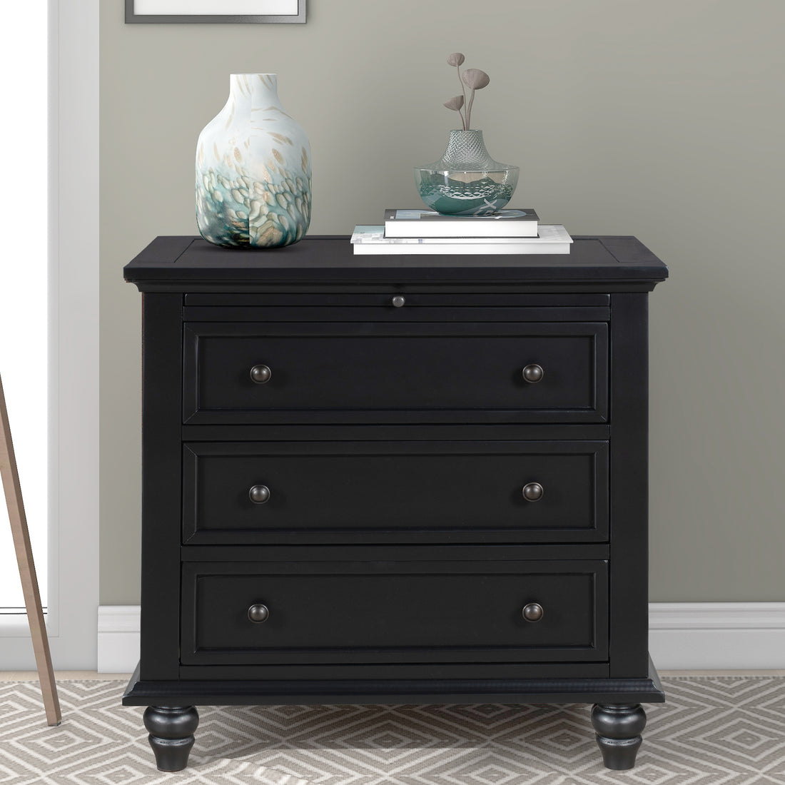3 Drawer Storage Wood Cabinet, End Table With Pull Out Tray As Same As Wf296671Aab Black Pine