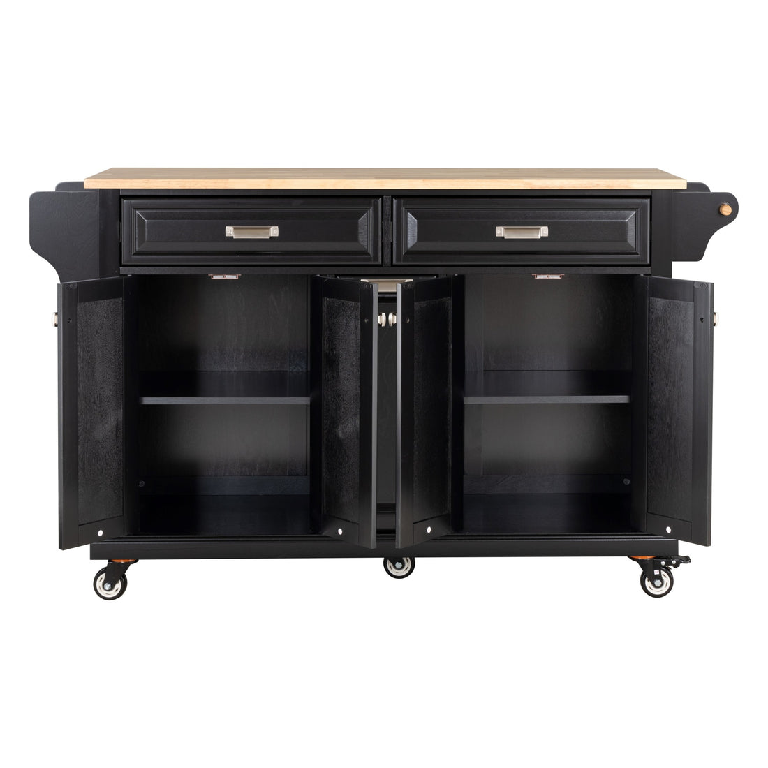 56 Inch Rolling Kitchen Island With Storage,Kitchen Cart With Solid Oak Wood Top,Two Sided Kitchen Island Cart On Wheelswine And Spice Rack, Large Kitchen Cart With 2 Drawers, Black Natural Top Black Natural Dining Room American Design,Antique