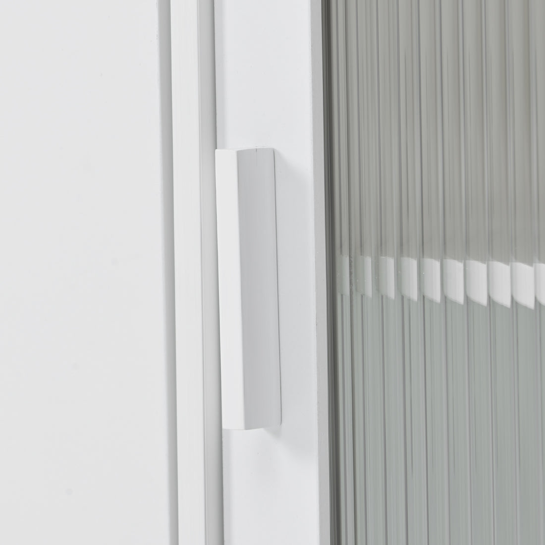 Lusk Bar Cart With 2 Bottle Holder Shelf, Glass Door And Casters White Industrial,Modern Particle Board Engineered Wood