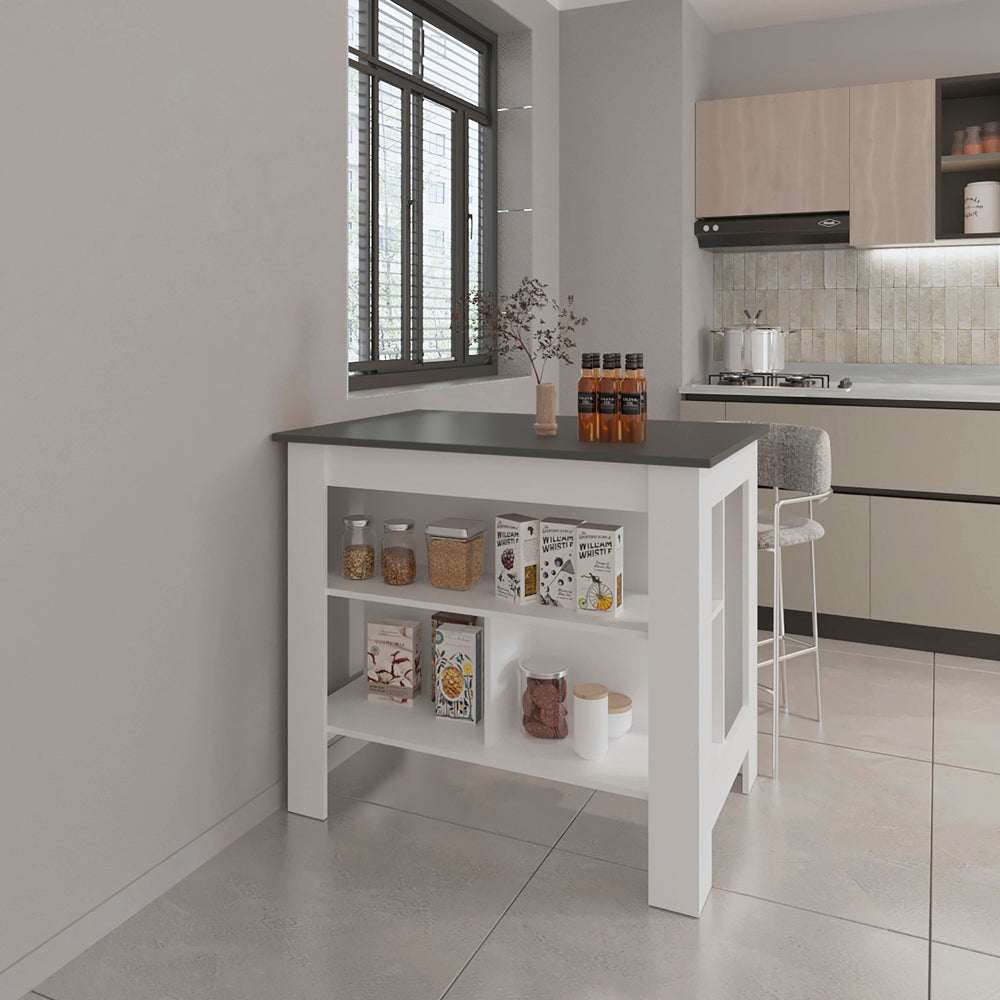 Cortes Kitchen Island 2 Tier Shelf 40" Width And Large Work Top Multi Kitchen Modern Rectangular Stationary Kitchen Islands Particle Board Medium 40 55In