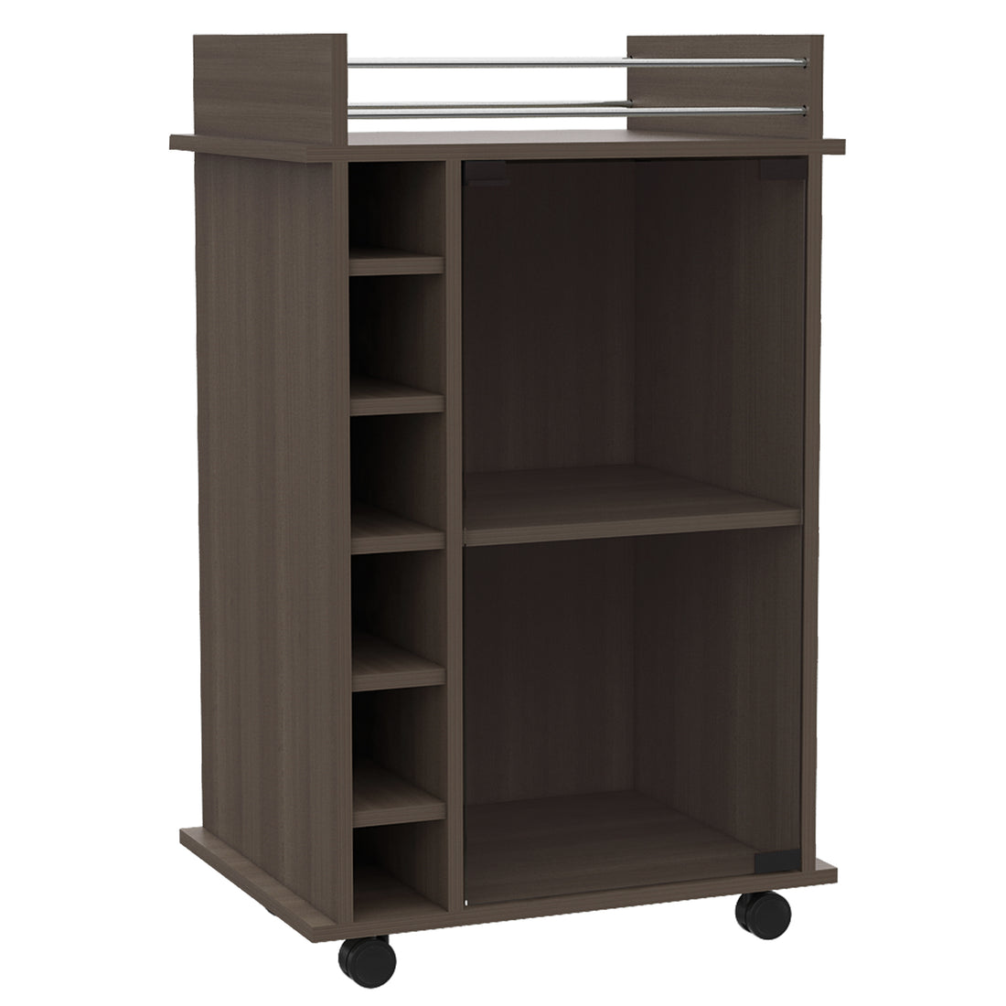 Name: Vegas Bar Cart, Two Tier Cabinet With Glass Door, Six Cubbies For Liquor Characteristics:...