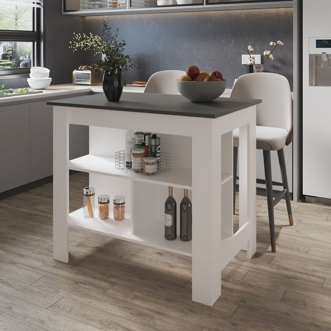 Name: Aztec Kitchen Island in Melamine with Open Storage, Grey+ white Description: Aztec Kitchen Island...