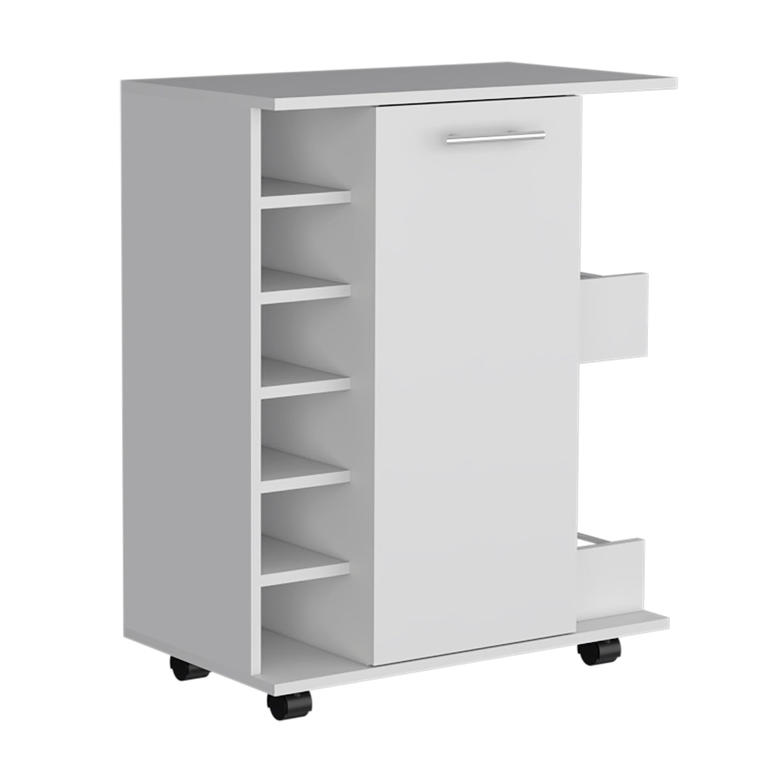 Name: Bar Cart with Six-Wine Cubbies Cabot, Two-Side Storage Shelves and Casters, White Finish Characteristics:...