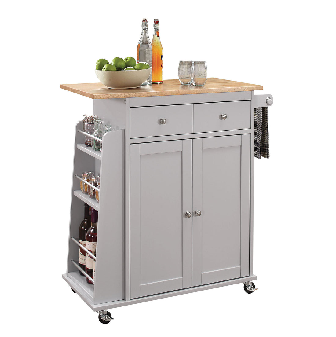 Name: Natural and Grey 2-Drawer Kitchen Cart Description: Romance Copy This versatile kitchen cart features...