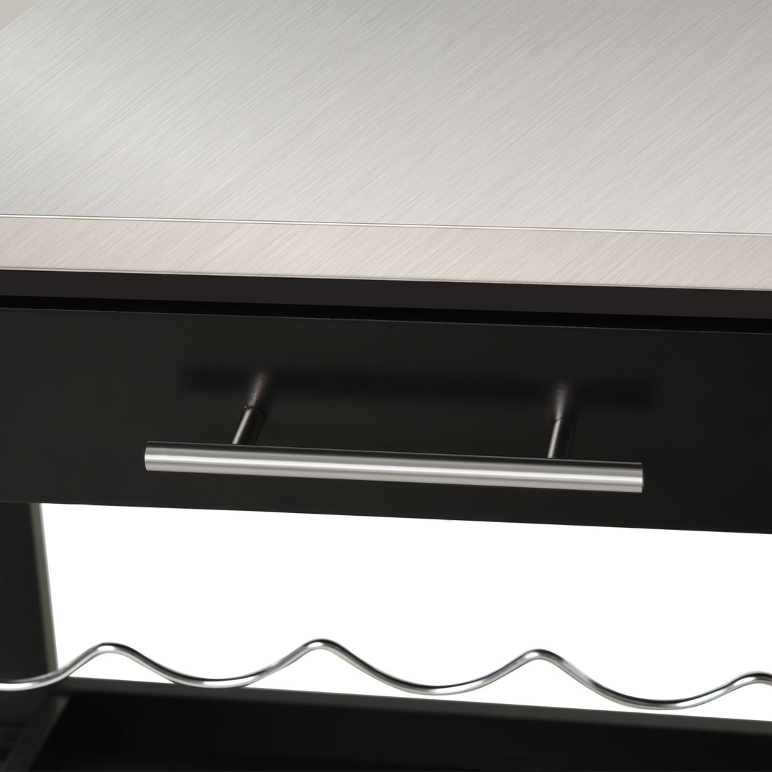 Homcom Kitchen Island Cart Rolling Trolley Utility Serving Cart With Stainless Steel Tabletop, Wine Rack & Drawer Black Pine