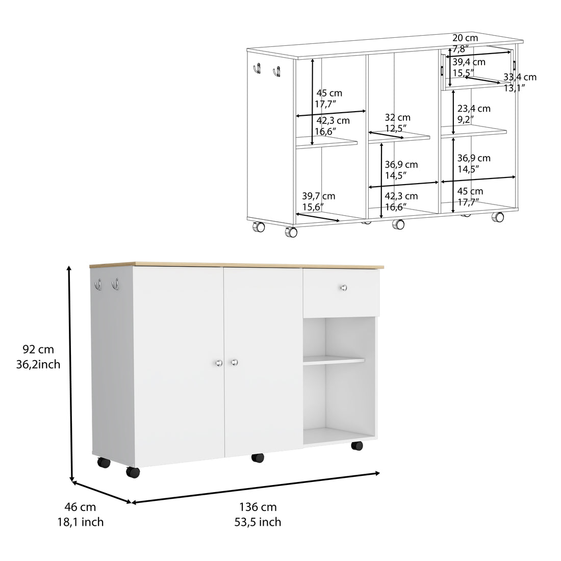 Name: Kitchen Island Cart, Six Carter, One Drawer, Double Door Cabinet, Two External Shelves, Four...