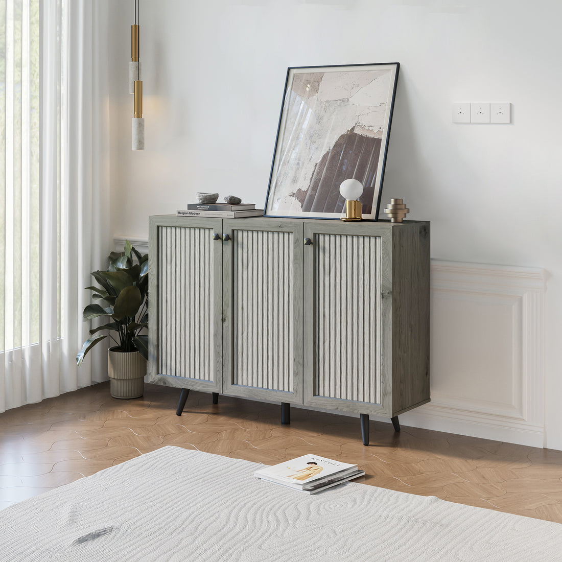 Storage Cabinet With Three Doors,Wood Sideboard Buffet Storage With Adjustable Shelf,Wood Coffee Bar Cabinet,Kitchen Buffet Cabinet Cupboard,46.85''W X 13.5''D X 38.19''H.Gray Gray Dining Room