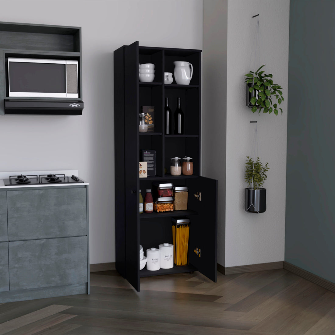 Name: Riner Multistotage 67" H with 5-tier storage shelves and 2 doors, Black Characteristics: Compact...