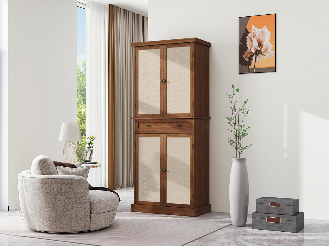 4 Door Cabinet With 1 Drawer, With 4 Adjustable Inner Shelves, Storage Cabinet Walnut Particle Board