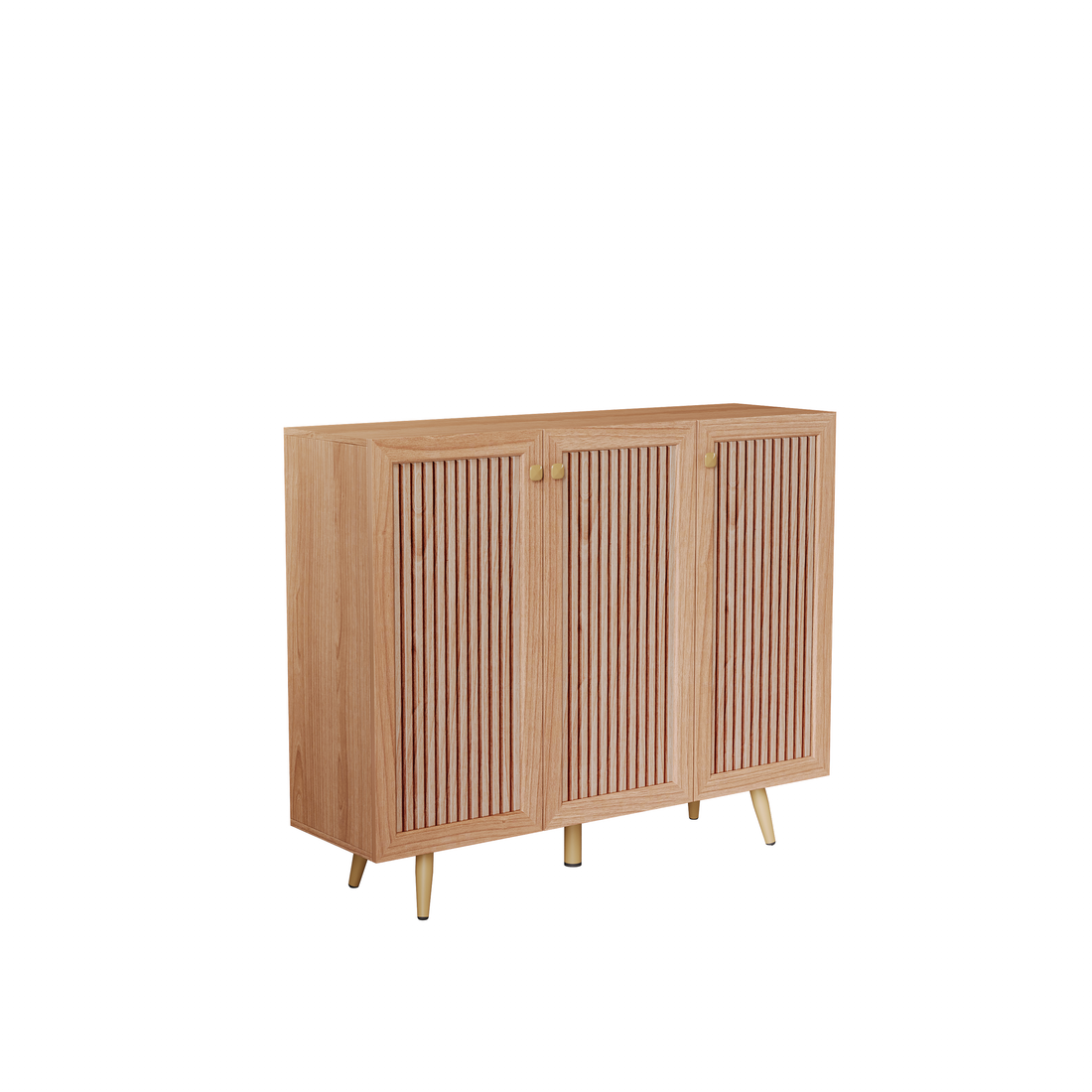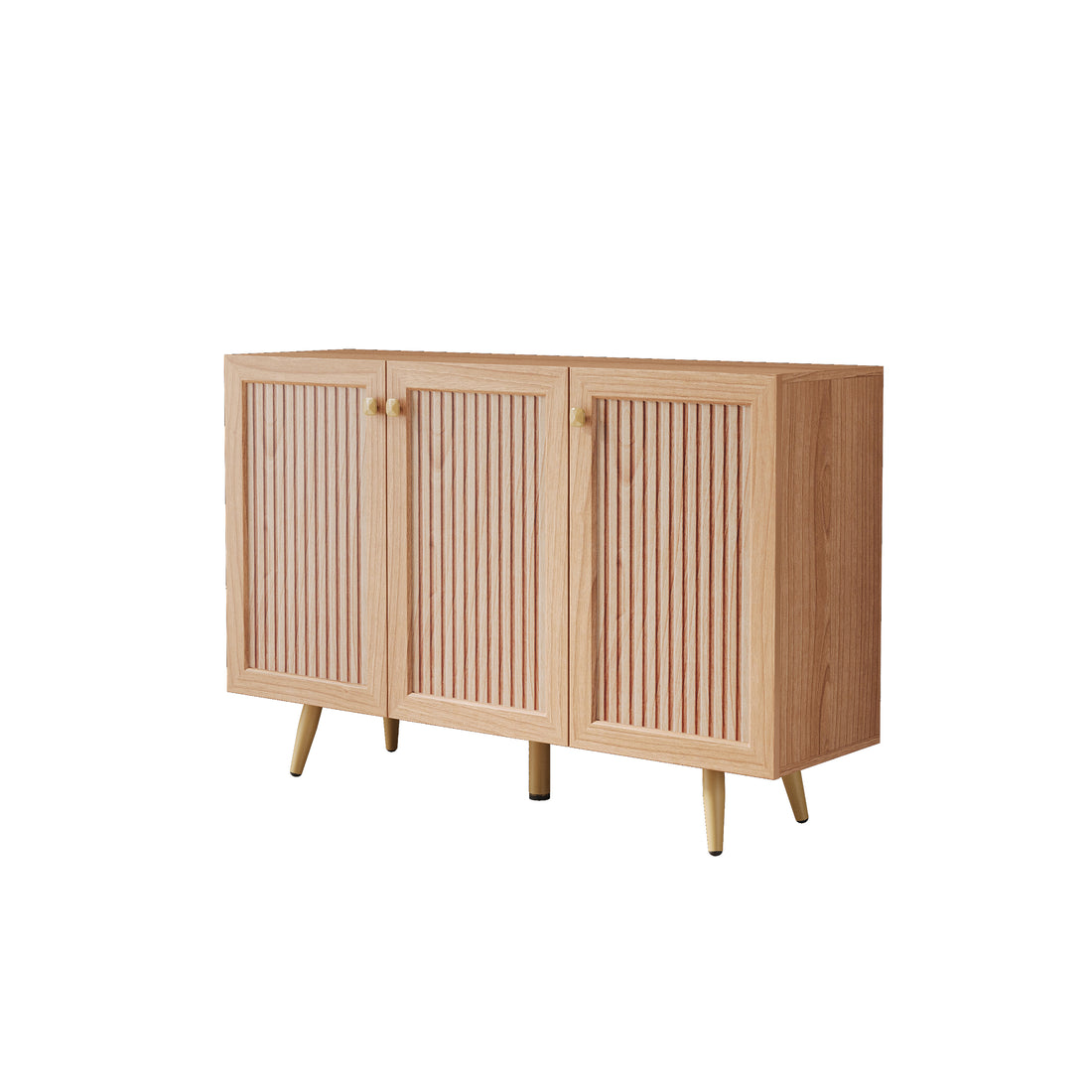 Storage Cabinet With Three Doors,Wood Sideboard Buffet Storage With Adjustable Shelf,Wood Coffee Bar Cabinet,Kitchen Buffet Cabinet Cupboard,46.85''W X 13.5''D X 38.19''H. Orange Yellow Particle