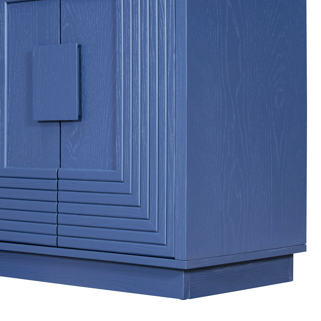 Elegant Four Door Sideboard With Wavy Pattern Doors, Cylindrical Legs, And Sleek Metal Handles, Adjustable, Suitable For Study, Entryway And Living Room Navy Blue Primary Living Space American