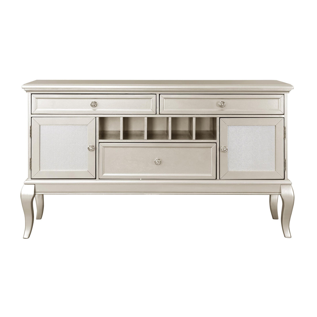 Modern Glamorous Silver Finish Buffet Of 3 Drawers Wine Rack Adjustable Shelfs Cabinet Server 1Pc Traditional Dining Furniture Silver Dining Room Glam,Modern,Traditional Adjustabel Shelves Wood