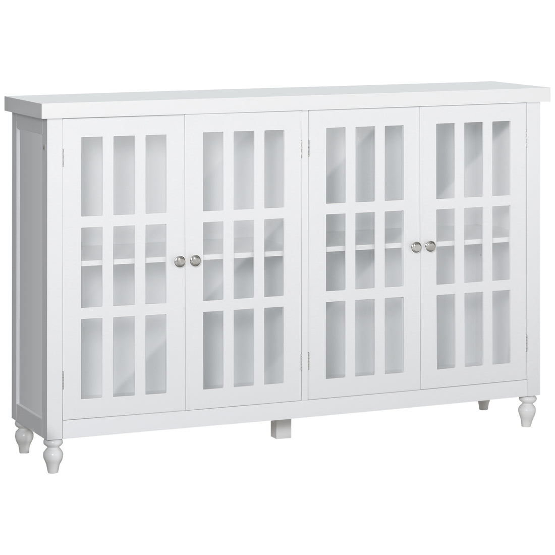 Homcom Sideboard, Buffet Cabinet With 4 Tempered Glass Doors, Stripe Pattern And Adjustable Storage Shelf, Credenza, White White Mdf