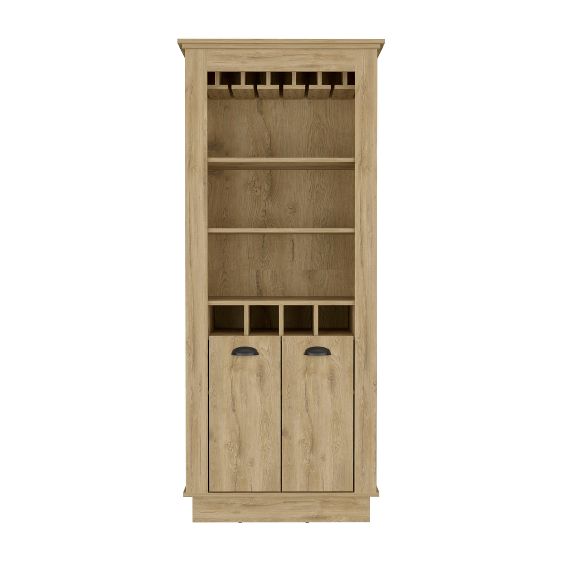 Lafayette Bar Cabinet With 4 Bottle Rack, Upper Glass Holder And Dual Door Design Beige Primary Living Space Modern Shelves Included Particle Board
