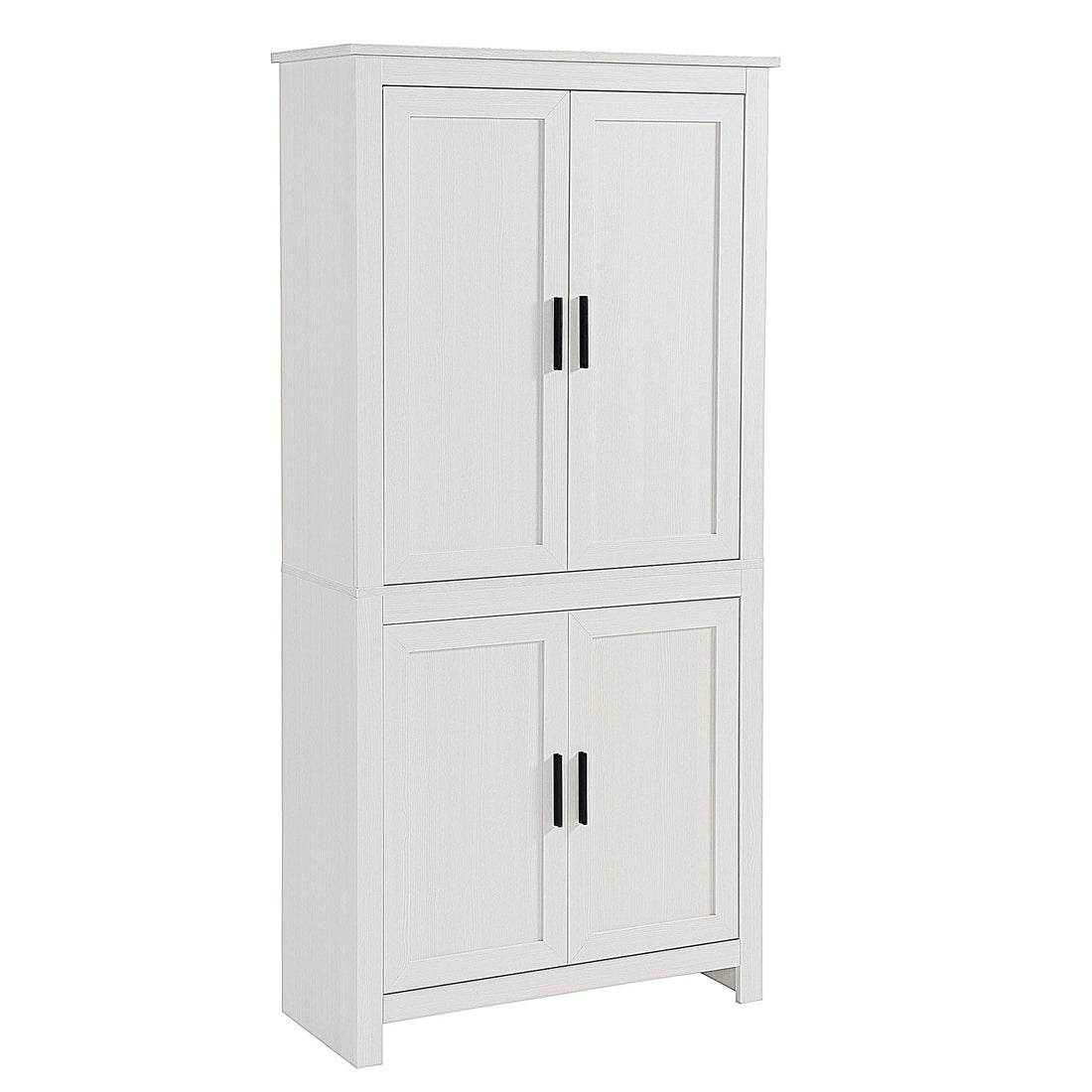 Homcom 72.5" Kitchen Pantry Cabinet, Traditional Freestanding Storage Cabinet With 4 Doors, Drawer And 3 Adjustable Shelves For Dining Room, White Wood Grain White Particle Board