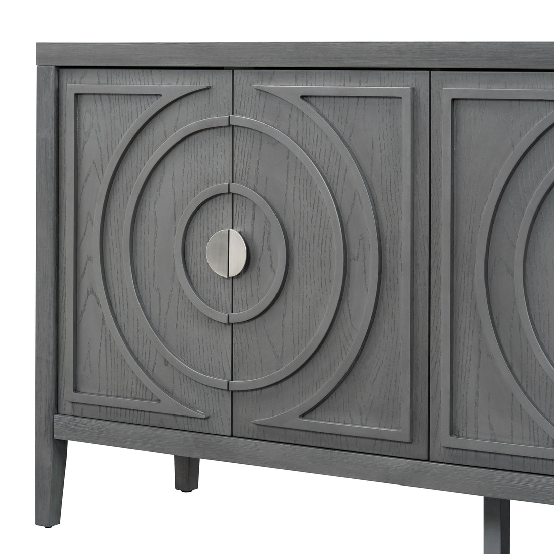 Modern Elegant 4 Door Sideboard Gold Metal Handle Buffet Cabinet For Dining Room, Living Room, Bedroom, Hallway Gray Gray Particle Board