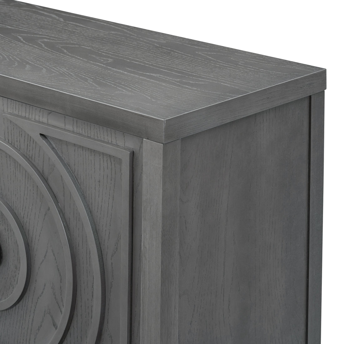 Retro Sideboard Door With Circular Groove Design Round Metal Door Handle For Entrance, Dinning Room, Living Room Gray Gray Mdf