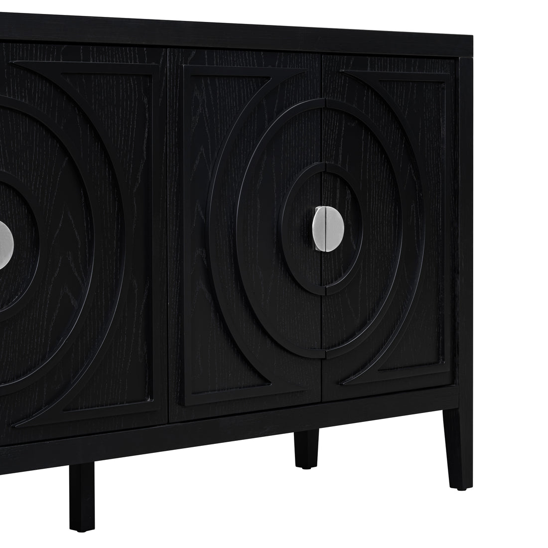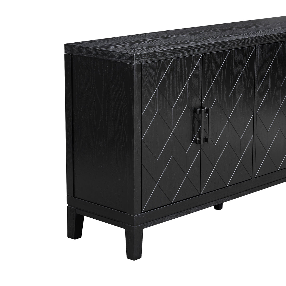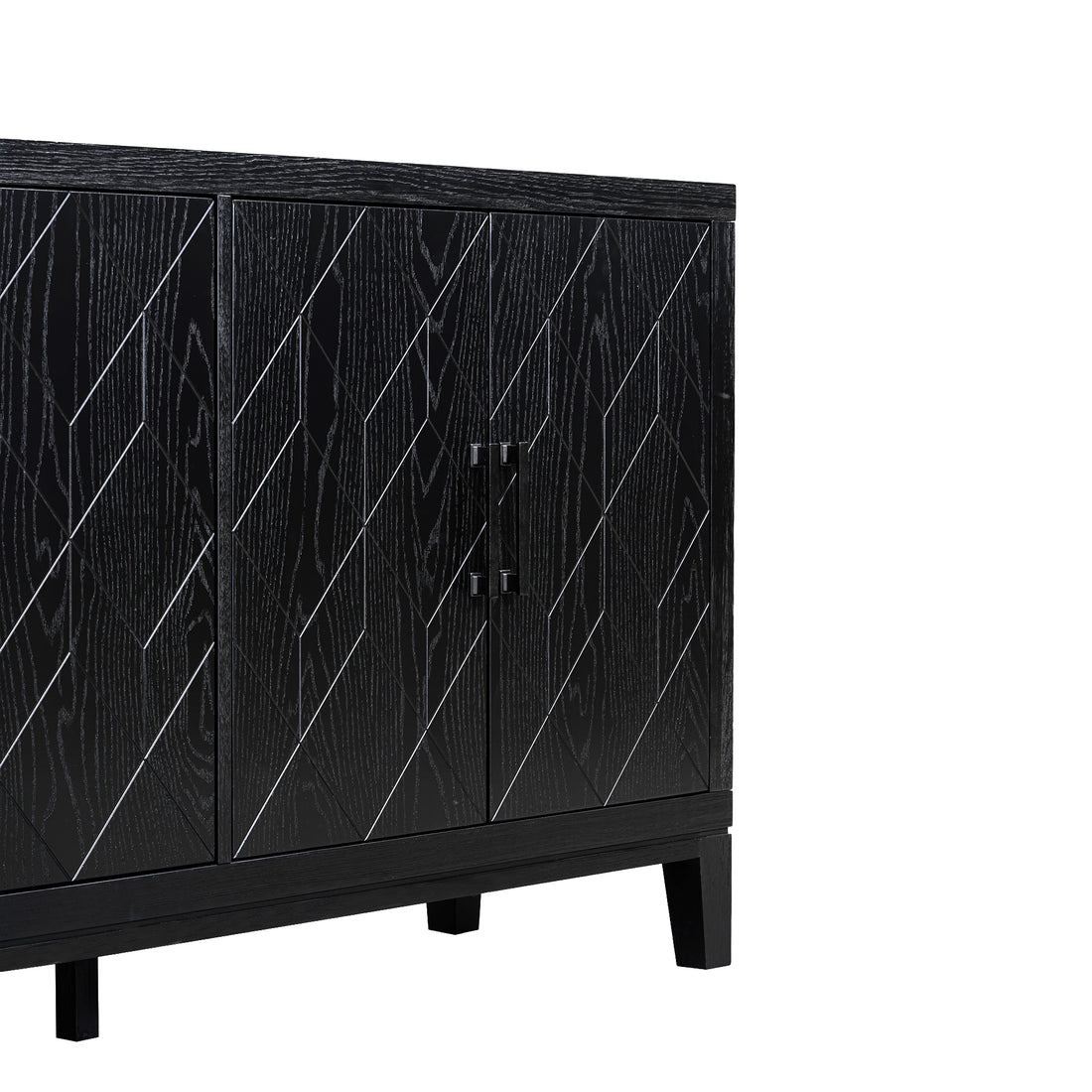 4 Door Retro Sideboard With Adjustable Shelves, Two Large Cabinet With Long Handle, For Living Room And Dining Room Black Black Mdf