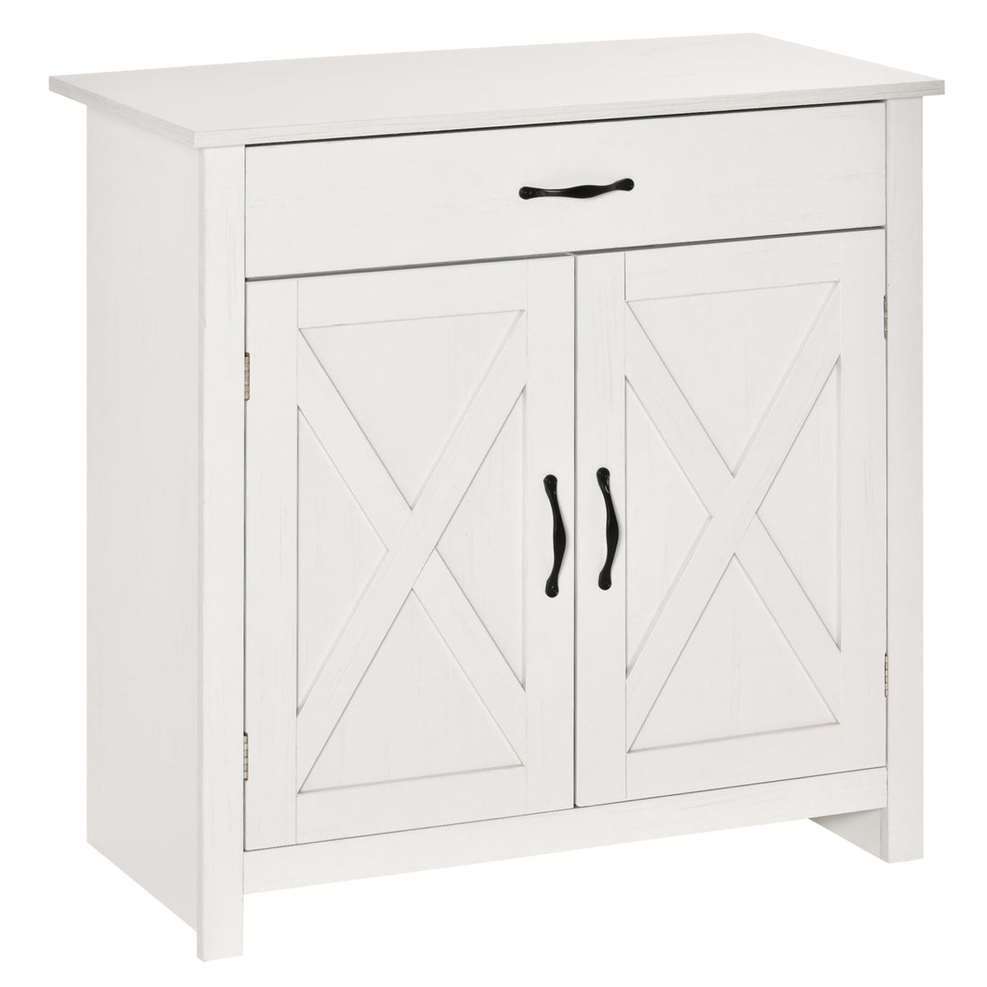 Farmhouse Sideboard Buffet Cabinet, Barn Door Style Kitchen Cabinet, 32" Accent Cabinet For Kitchen, Living Room Or Entryway, White Wash White Mdf