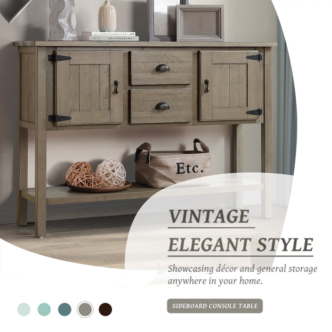 48'' Solid Wood Sideboard Console Table With 2 Drawers And Cabinets And Bottom Shelf, Retro Style Storage Dining Buffet Server Cabinet For Living Room Kitchen Dining Room Antique Gray Antique Gray Pine