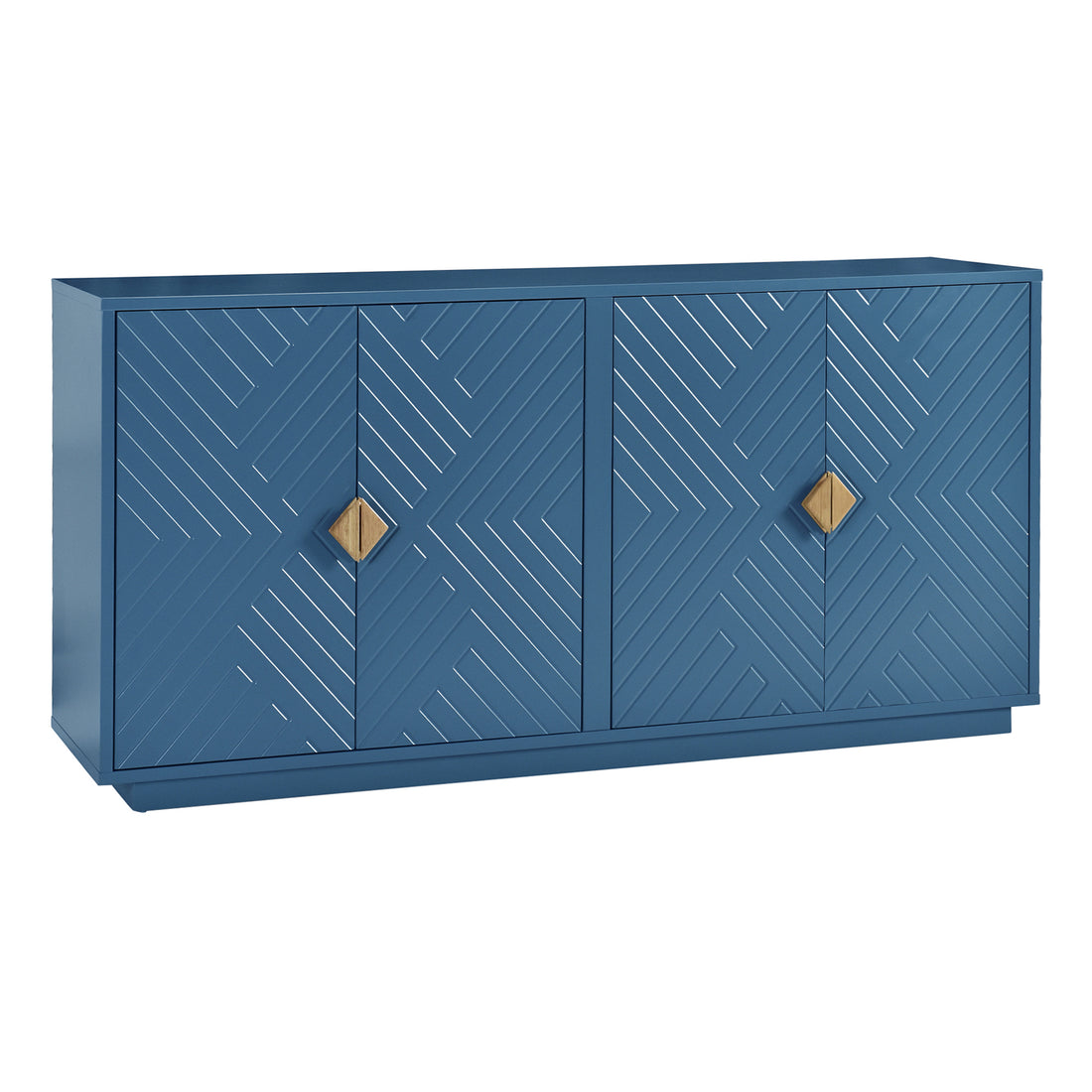 Modern Functional Large Storage Space Sideboard With Wooden Triangular Handles And Adjustable Shelves For Living Room And Dining Room Navy Blue Navy Blue Mdf