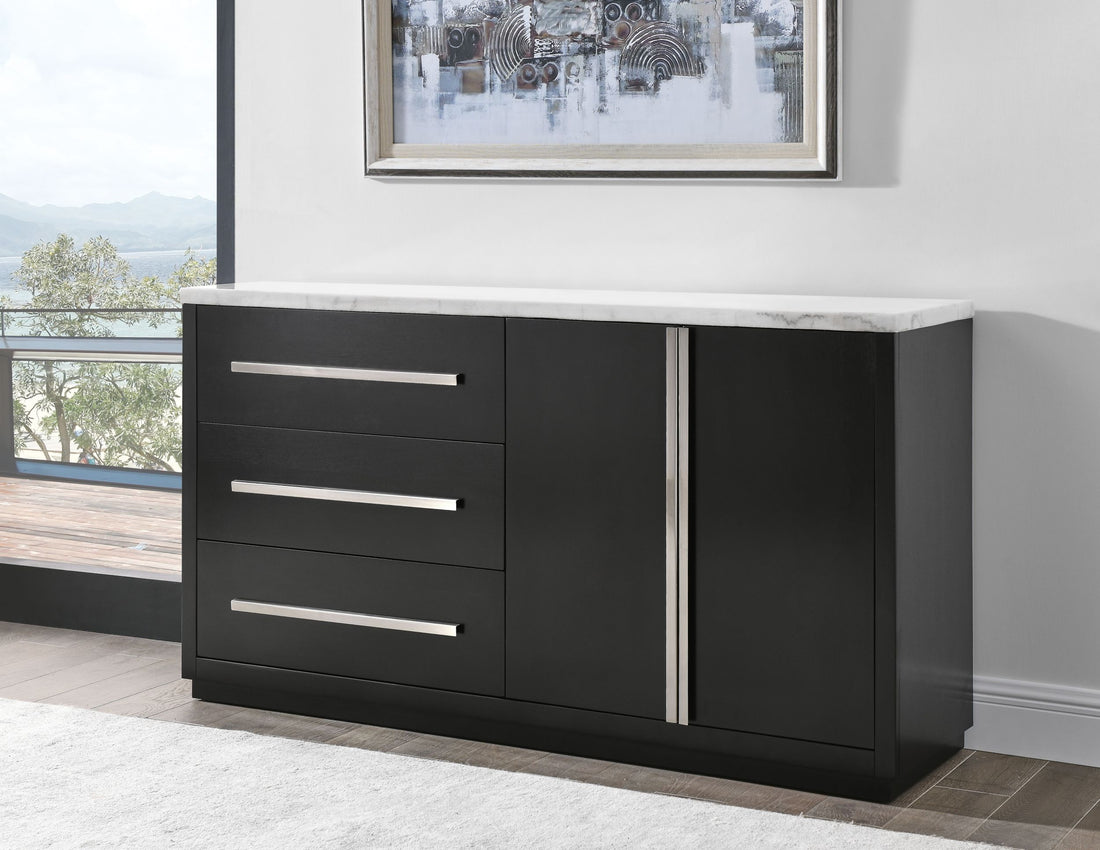 Name: Camila - White Marble Top Server - Black Characteristics: Constructed of birch veneers, engineered...