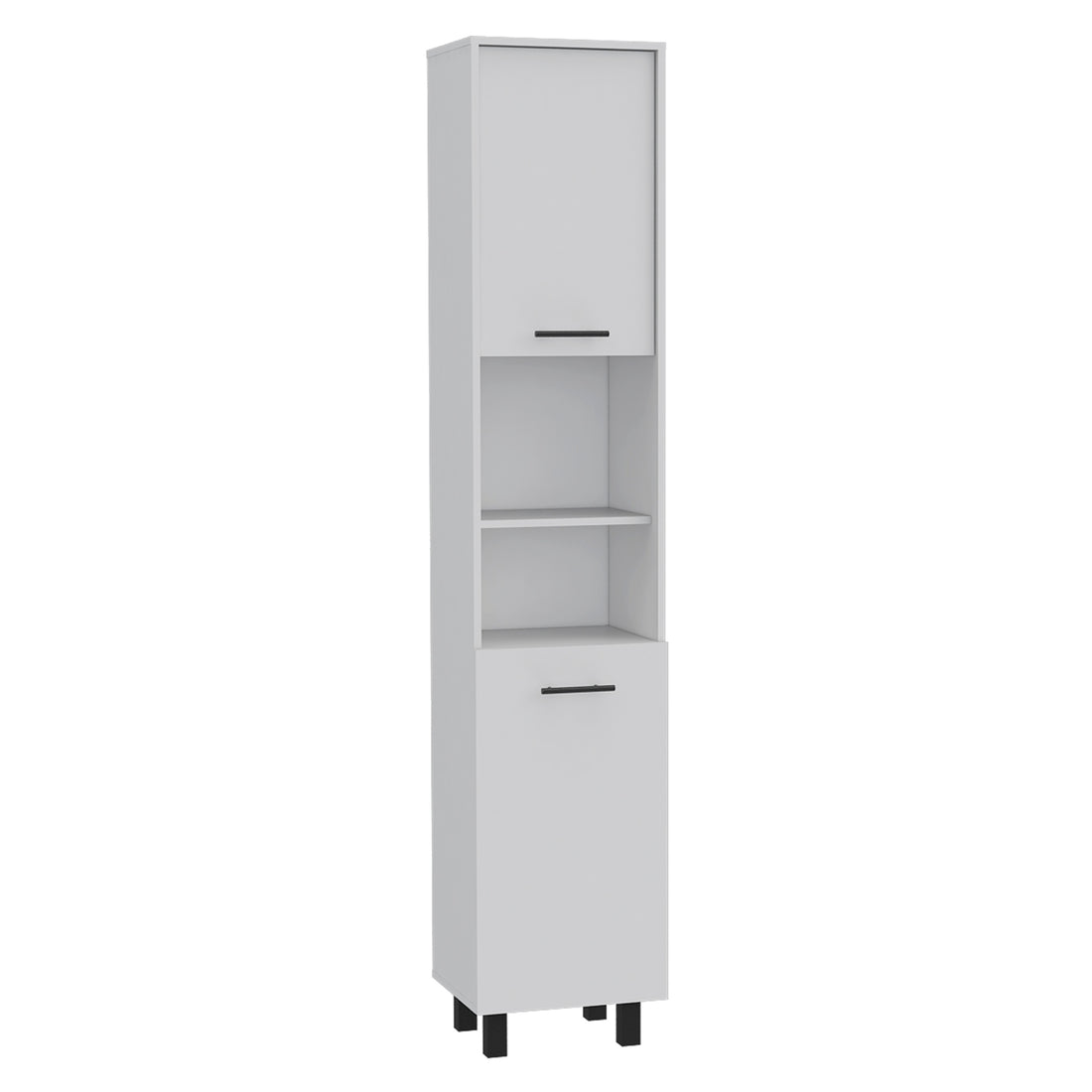 Poole Pantry Cabinet, Three Side Small Shelves, One Drawer, Double Door Cabinet, Four Adjustable Metal Legs White Mdf Engineered Wood
