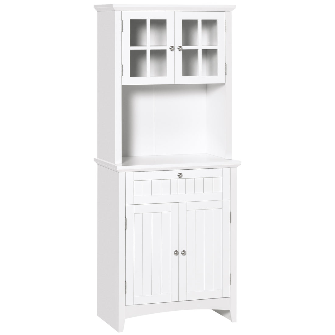 Homcom Elegant Buffet With Hutch, Kitchen Pantry Storage Cabinet With Framed Glass Door Drawer And Microwave Space, White White Mdf
