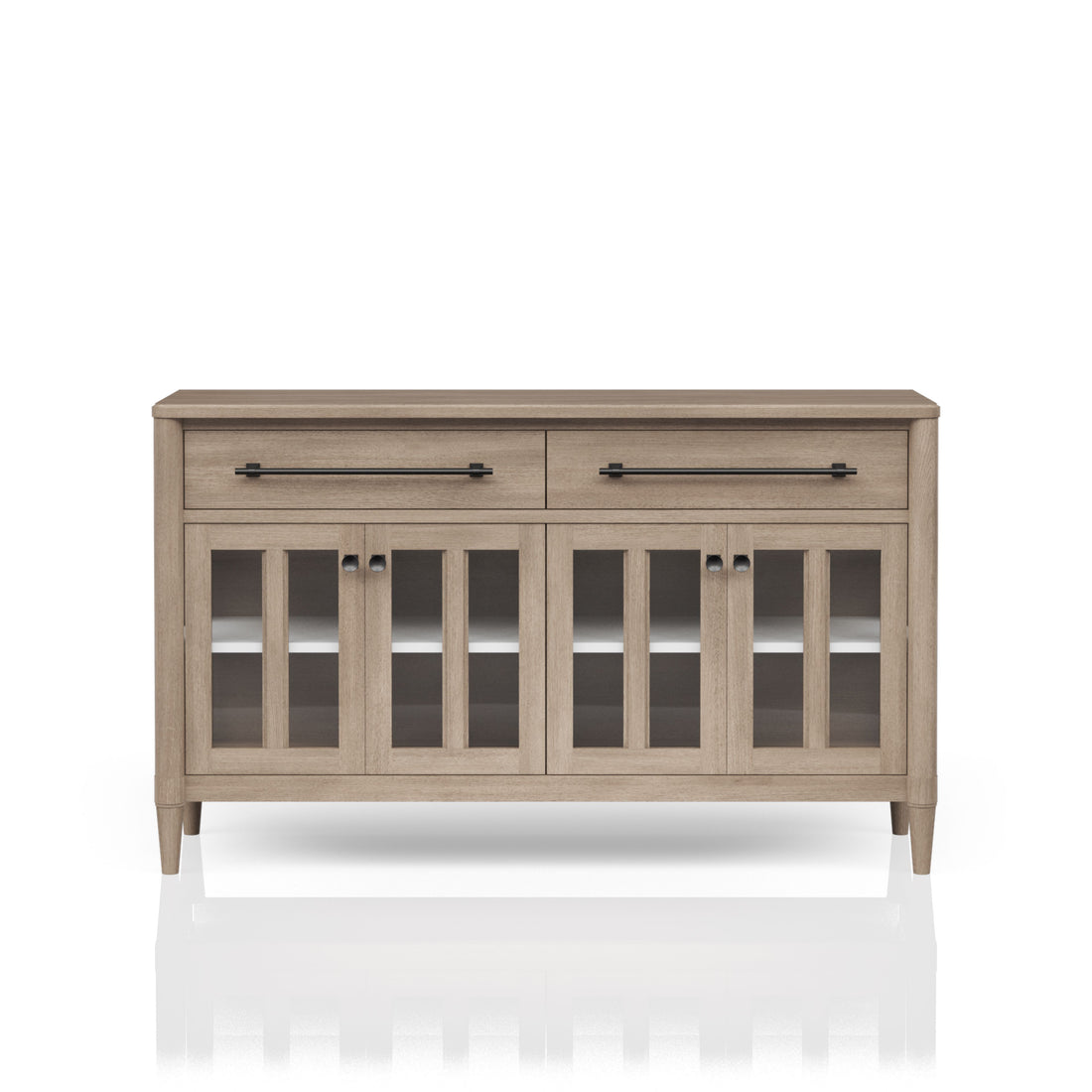 Power Raedy Buffet With Glass Cabinet Doors Sand Solid Wood Mdf