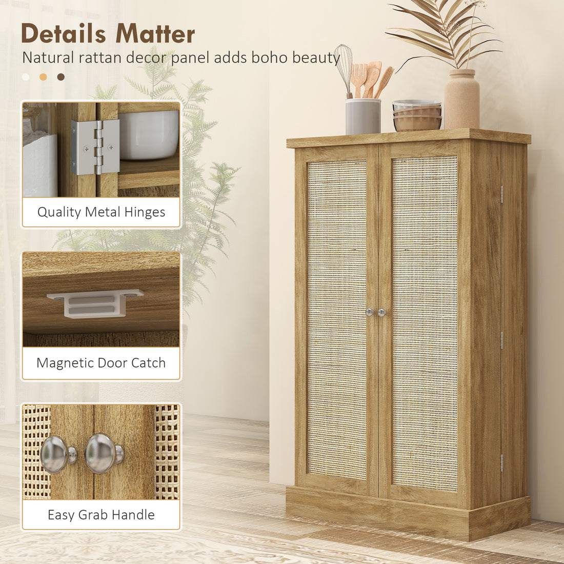 Homcom Accent Cabinet, Sideboard Buffet Cabinet With Rattan Doors, Adjustable Shelf And Metal Base, Boho Storage Cabinet For Living Room, Kitchen, Natural Natural Wood Particle Board