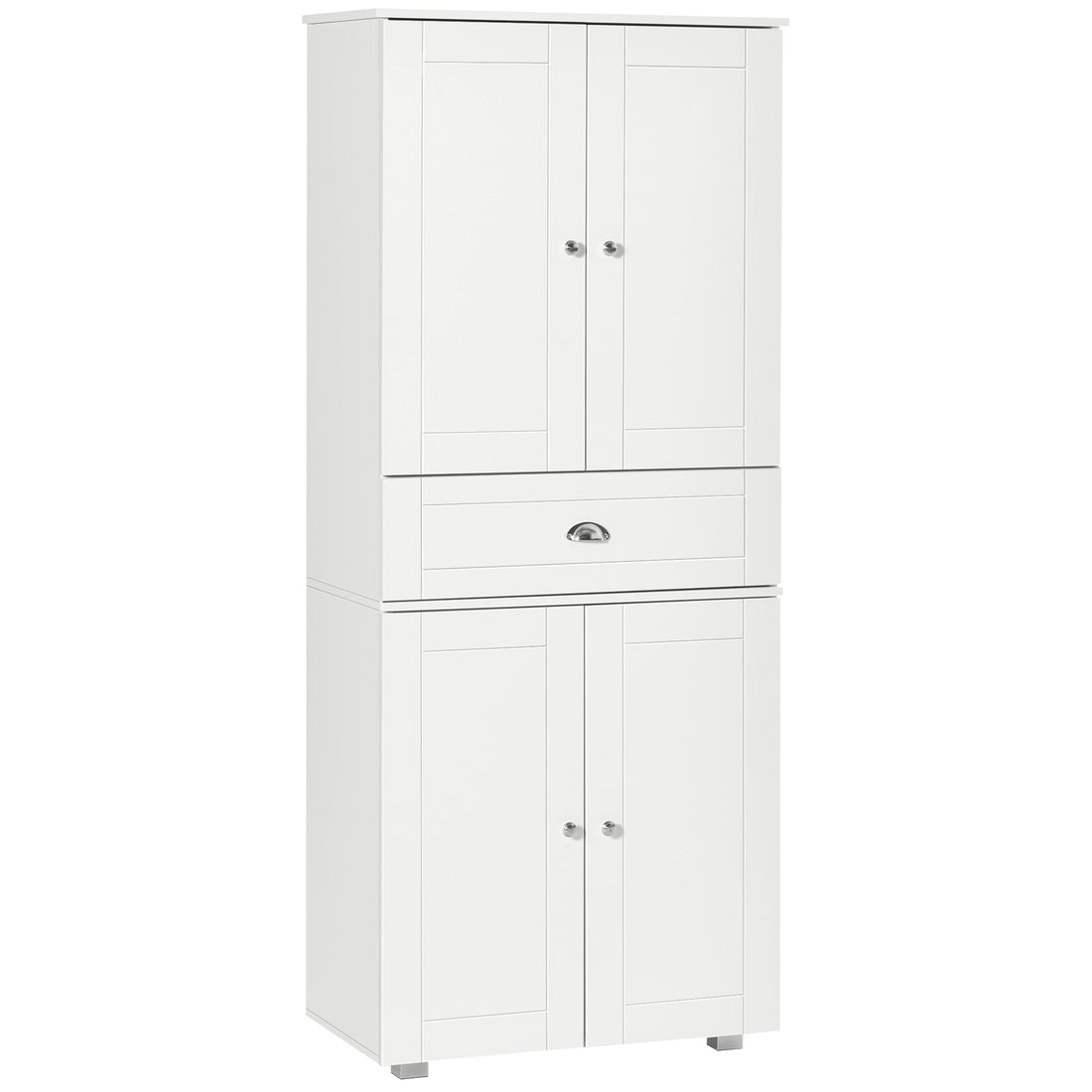Homcom 72" Freestanding Kitchen Pantry Cabinet With 2 Large Double Door Cabinets And 1 Center Drawer, White White Mdf