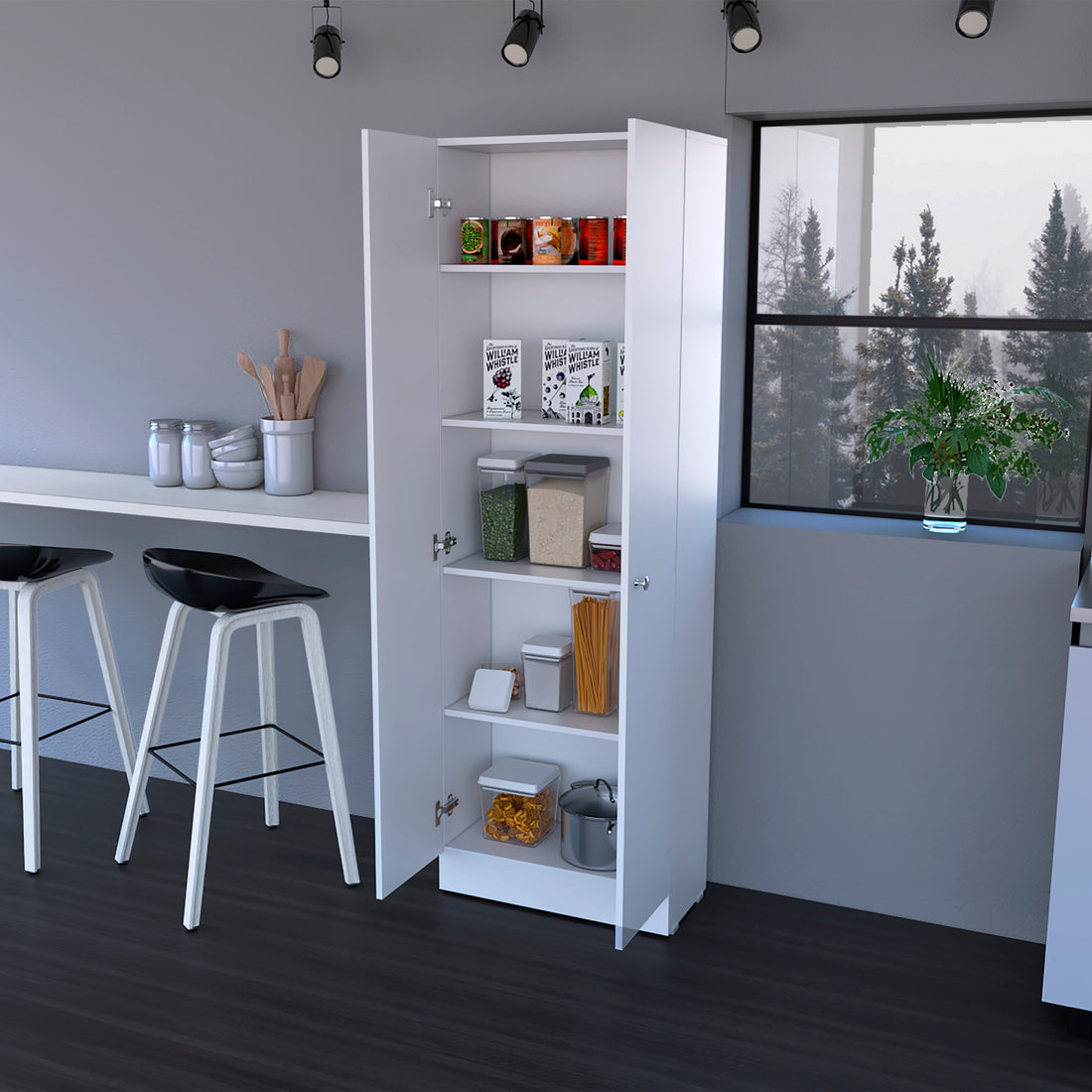 Storage Cabinet Pipestone, Double Door, White Finish White Particle Board